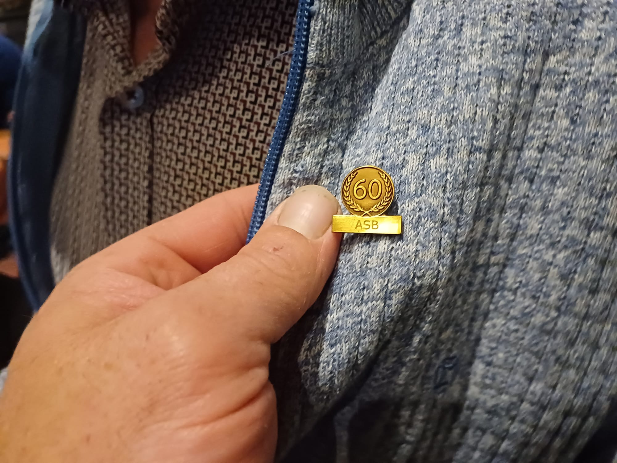 Tijdens de jaarvergadering werd Henk Scholts in het zonnetje gezet. 50 jaar lid, dus ook 50 jaar bij de ASB. Daarom was Wim Lensink aanwezig om het ASB speldje uit te reiken.