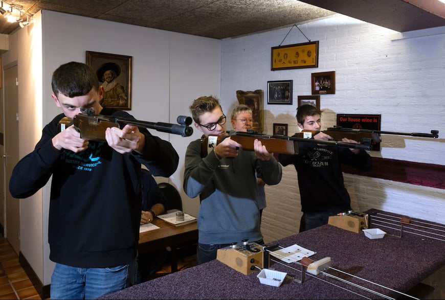 Na één kennismakingsronde heeft Brian Luiten de smaak al te pakken, op de schietbaan van restaurant en grand café Het Noorden van Aalten. De 16-jarige vmbo-scholier van scholengemeenschap Schaersvoorde blijkt geen onverdienstelijk schutter en raakt de kaartjes volop met het luchtgeweer.